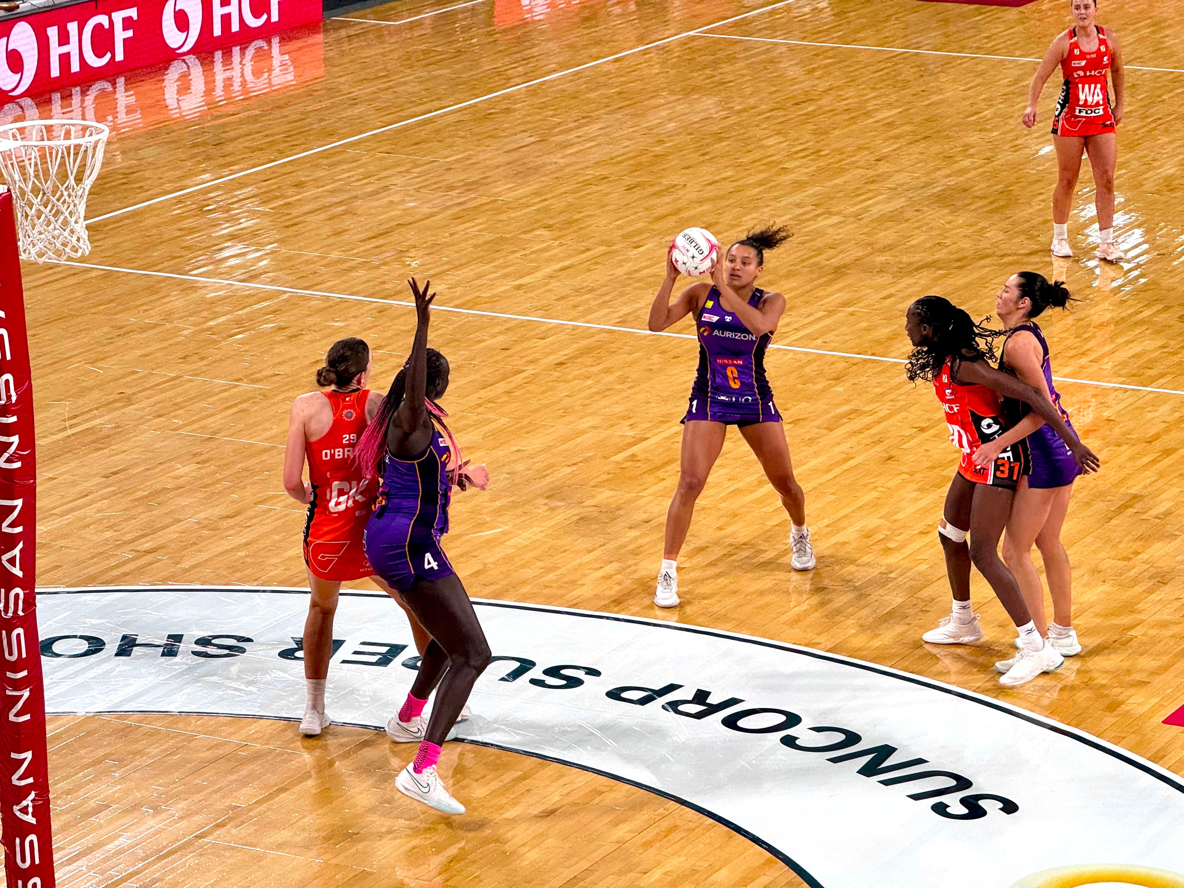 Suddenly a side that had struggled in recent years to reel in a deficit without using Super Shots, had done exactly that, and with a couple of minutes to go, the home team found themselves in front. The Firebirds were not helping their own cause, shooting just 72% accuracy in the first half, however Cholhok’s superiority in the air meant that even when she was missing shots, second chances were created as a result of her rebounding ability, and the Firebirds went into halftime with their nose back in front by one.